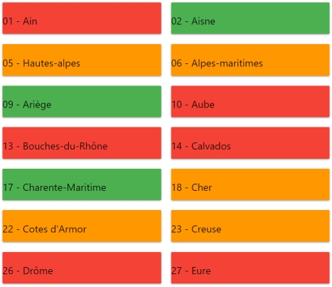 Recherchez dans la liste votre département puis cliquez dessus pour obtenir les informations